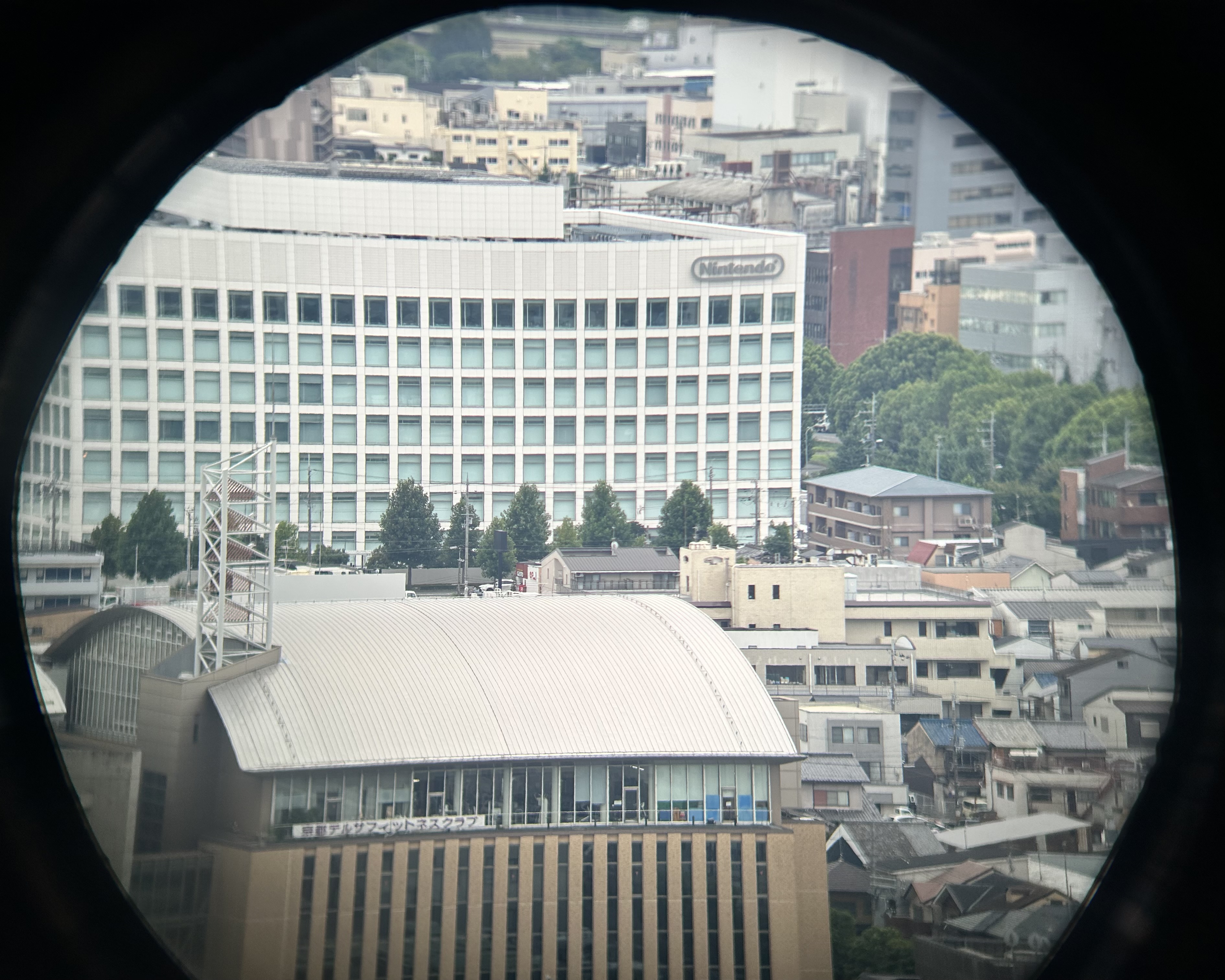 まず京都タワーから任天堂本社を望遠鏡越しに見学。