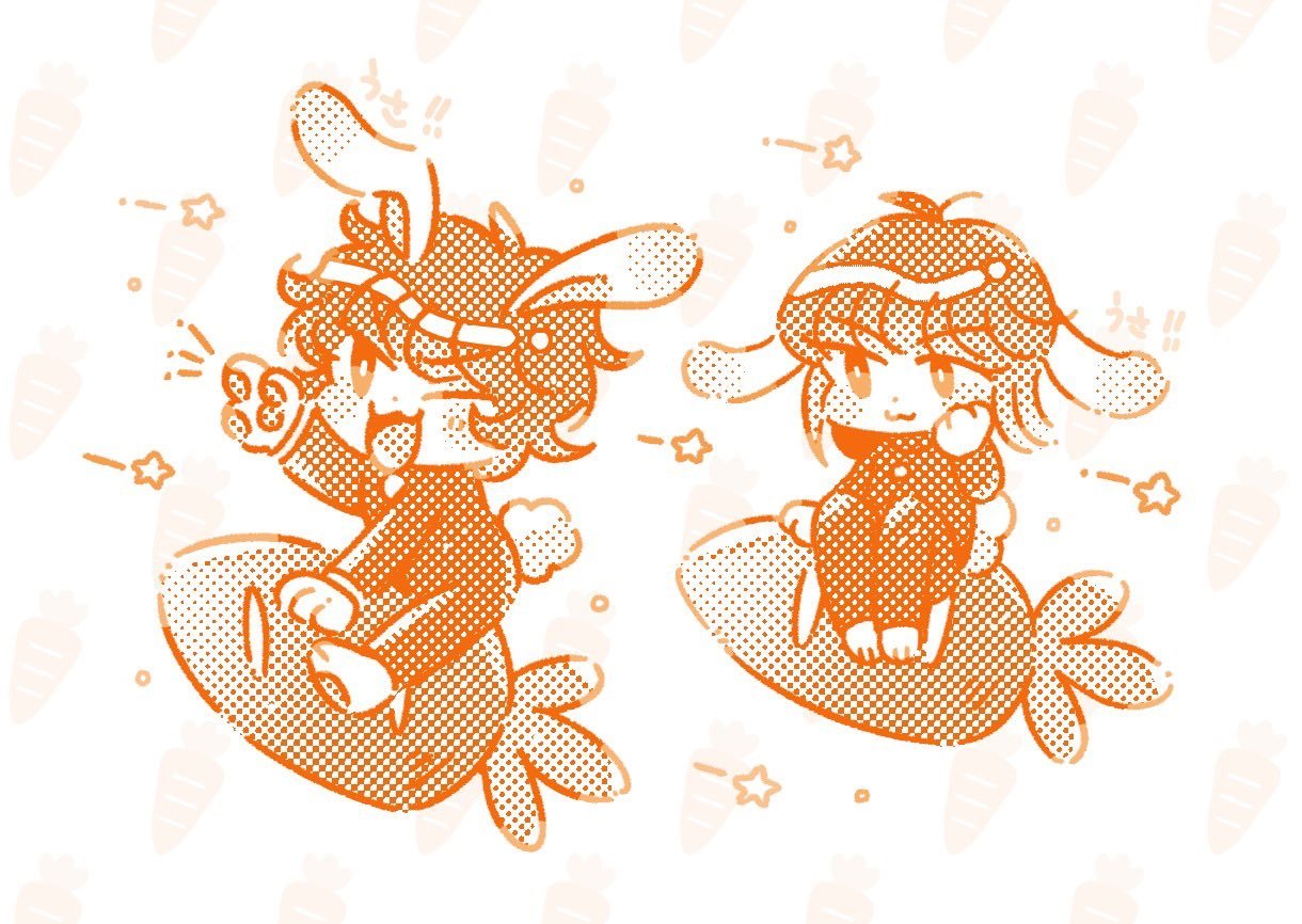 ▲椎倉さんより 前に椎倉さんが別ジャンル参加の時シール作って差し入れしたらその御礼にといただきました! かわいい…倍返しってもんじゃないよ〜〜かわいい〜〜🐰🥕 塊くんは元気、翔くんはおすましで違いもかわいい。