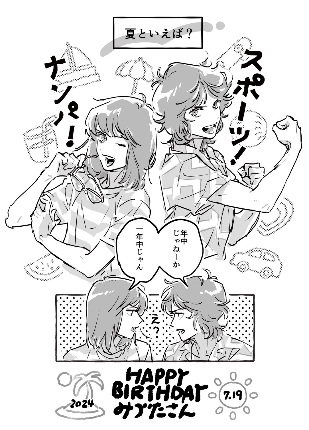 ▲ほとさんから どっちも一年中じゃんって声を揃えて相手のこと言ってるの、かわいいが過ぎる〜〜…!なかよし〜〜!! 体格差大好きなので塊くんのしっかりした筋肉や首筋、翔くんの腕の細さにテンションが上がりました。嬉しい。 本当にかわいい塊翔ありがとうございました!✨